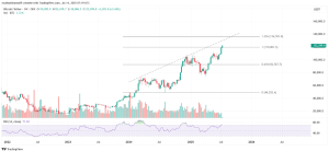 The technical analysis supports continued upward momentum. Bitcoin has been trading within an ascending trendline that has served as resistance since early 2024. The cryptocurrency has tested this resistance level twice and is approaching a third test, which could trigger a breakout to new all-time highs.
