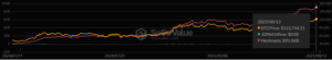 Competing Bitcoin ETFs trail significantly behind BlackRock’s offering. Fidelity’s FBTC ranks second with $24.77 billion in assets and $12.07 billion in net inflows. Grayscale’s GBTC manages $22.18 billion despite experiencing $23.72 billion in outflows. Ark Invest’s ARKB oversees $5.58 billion, while Bitwise’s BITB holds $5.02 billion.