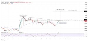 - A breakout from a falling wedge could push ADA to $2.30 if it confirms support at $0.89.
