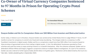 A federal judge in Brooklyn sentenced Dwayne Golden to 97 months in prison for orchestrating a $40 million cryptocurrency Ponzi scheme. The 57-year-old was convicted of wire fraud and money laundering charges for fraudulent operations across three digital asset companies.