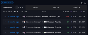 The recent sale continues a pattern of regular ETH disposals by the Foundation. The organization sold over 4,000 ETH for nearly $19 million last month. Additional smaller sales occurred in April when 1,000 ETH was transferred to the Kraken exchange.