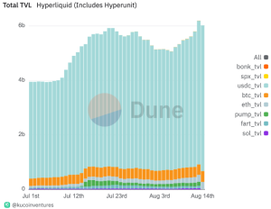 Hyperliquid has achieved a new milestone with assets under management (AUM) hitting $6.2 billion, driven by substantial institutional inflows and growing market confidence. The decentralized derivatives exchange recorded this breakthrough on August 13, marking a significant expansion in its market presence.