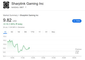 SharpLink Gaming experienced a notable surge in stock price on Tuesday, closing up 7% at $9.66 after announcing its latest cryptocurrency acquisition. The sports betting company expanded its Ethereum holdings by purchasing an additional $30 million worth of ETH tokens.