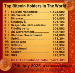 Strategy’s position makes it the third-largest Bitcoin holder globally, trailing only Bitcoin’s anonymous creator, Satoshi Nakamoto (1.12 million BTC), and asset manager BlackRock (731,527 BTC). This ranking underscores the company’s significant influence in the Bitcoin ecosystem and corporate cryptocurrency adoption.