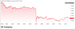 Bitcoin’s recent performance has contributed to the challenges that Strategy faces in its strategy. The cryptocurrency trades just below the $113,000 psychological level, down over 2% in the past 24 hours. This decline reflects broader cryptocurrency market weakness attributed to macroeconomic factors.