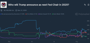 Prediction markets currently favor Chris Waller for the Fed Chair position. Polymarket data shows a 27.5% probability that Trump will select Waller as Powell’s successor. This aligns with reports suggesting the administration appreciates Waller’s forward-looking approach to monetary policy decisions.