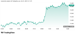 Bitcoin climbed past $116,000 following the release of employment data. The digital asset extended gains from the previous week as rate cut expectations intensified. Trading volume in Bitcoin futures reached $100 billion in a single session, increasing by more than 18%, according to Coinglass data.
